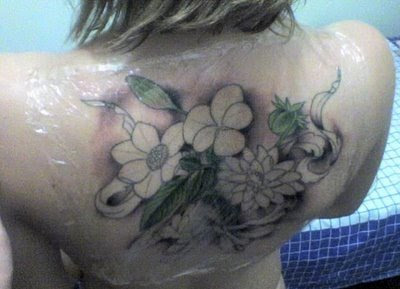 A tinta que ficou retida na camada epitelial e córnea é removida da pele rapidamente. A primeira que sai é a da cama córnea, já que está mais superficial, e esta tinta removida pode ser observada na primeira troca do curativo, quando muitas pessoas se espantam ao retirar o plástico da tatuagem e vêem o desenho parecendo que está derretendo: mas é só lavar que sua tatuagem ainda continua bonita no mesmo lugar.
